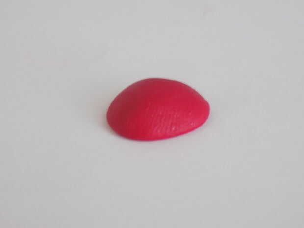 Después de eso, el rodillo el otro color de arcilla (el mío es rojo) en forma de bola. Empuje hacia abajo y la forma como en la foto, lo que parece un bollo de cúpula o una hamburguesa.