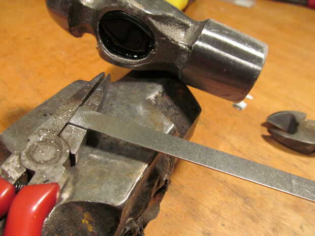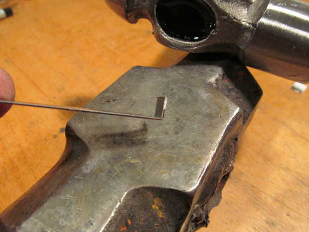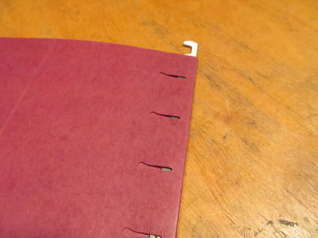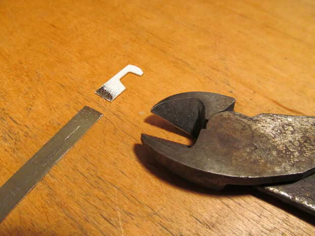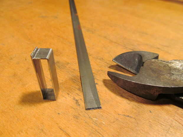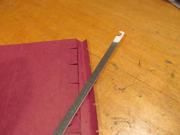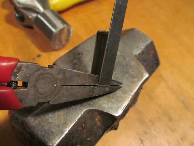Cortar la tira a un divisor de archivo. Utilice un par de pinzas para doblar el extremo a 90 grados. Asegúrese de que la curva se dobla lleno.