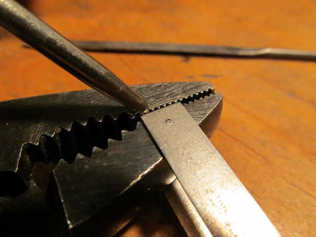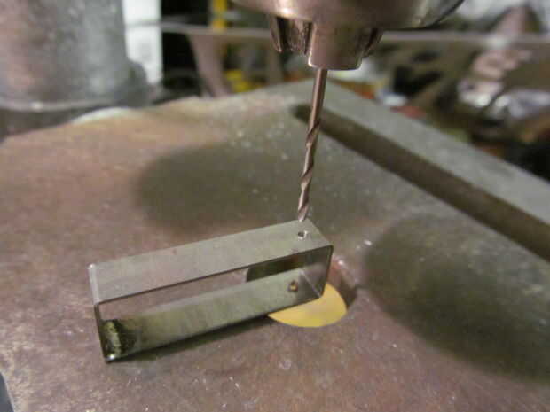 Colocar el rectángulo sobre las pinzas y utilizar un punzón para hacer una baliza de salida de la broca. Hacerlo en ambos lados. Taladre un agujero y que la broca útil.
