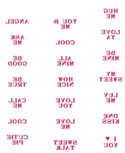 Utilice una impresora láser de color o una copiadora de color para imprimir las palabras que transferimos a los corazones. Corte a la transferencia como cerca de las letras como sea posible. He conectado para imprimir ficheros con algunas frases que puede utilizar para vuestros corazones. Estos archivos ya tienen las frases en "imagen de espejo", que usted necesitará para hacer a las transferencias.