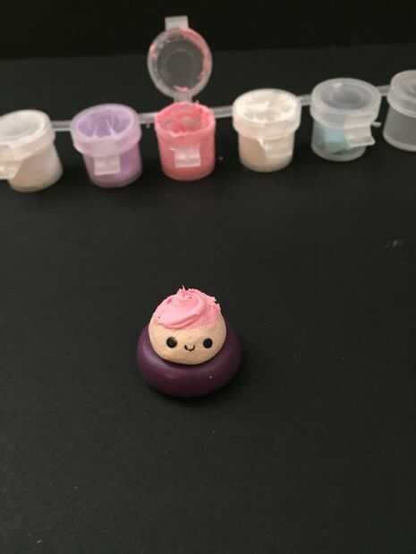 Usted puede comprar estas mezclas o hacerlos. He hecho mía. Ver otro tutorial. Tome un palillo de dientes y aumentar cantidad de helar deseada en la parte superior. Borrón de transferencia alrededor hasta logra el aspecto deseado.