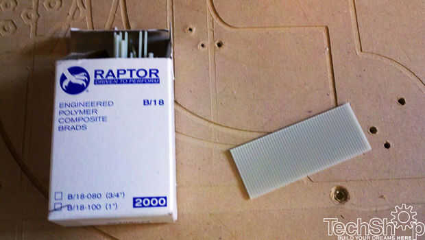 Empresas como Raptor de clavos y grapas ofrecen una variedad de sujetadores, todo hechos desde el mismo polímero de alta resistencia y vienen en tamaño estándar tiras que ajuste más clavadoras neumáticas. Es la fuerza de tracción (pull) de los clavos, en algunos casos, el doble que sus contrapartes de acero que hace de gran trabajo en la mesa de la CNC - mientras usas un suave estropear board, como MDF.