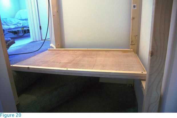 La superior plataforma es simplemente un rectángulo del tablero contrachapado confianza, dependía de una viga transversal y tener un paso lateral para dejar la silla de ruedas de rodar fuera y un labio frontal para rodar (figuras 19 y 20).
