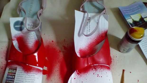 poner un papel dentro de los zapatos para evitar pintura roja dentro de ellos