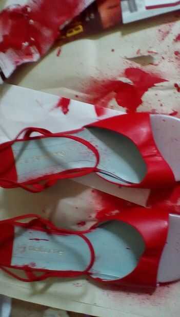 después de que haya terminado de rociar los zapatos con pintura en aerosol