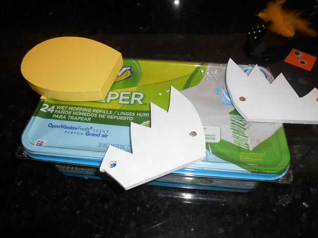 Pegamento en los ojos, el pico y las plumas.