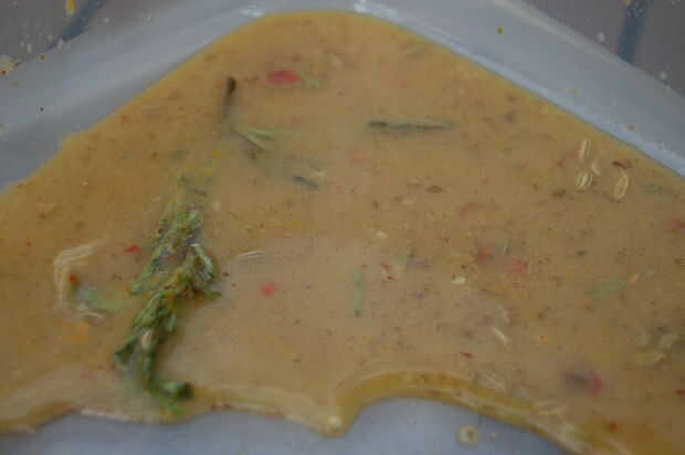 Mezclar todos los ingredientes del adobo en un recipiente lo suficientemente grande para también el pollo.