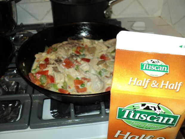 Cuando todo esté caliente, vierta en su mitad y mitad o leche para casi cubrir.