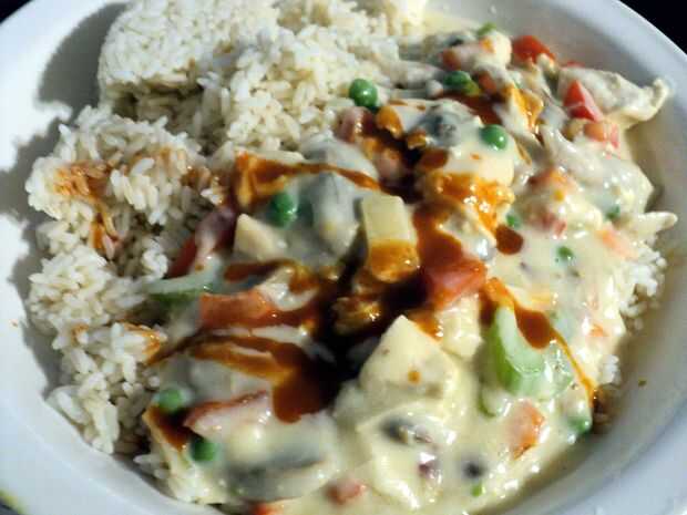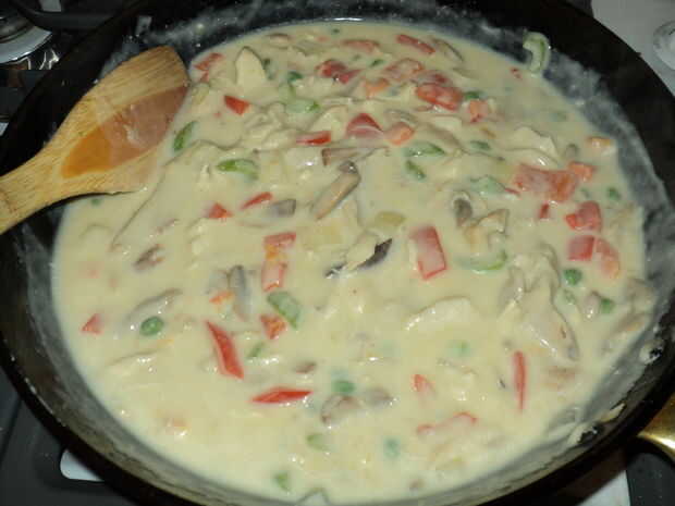 Ahora debe tener un buen lote de pollo y verduras en una salsa cremosa.