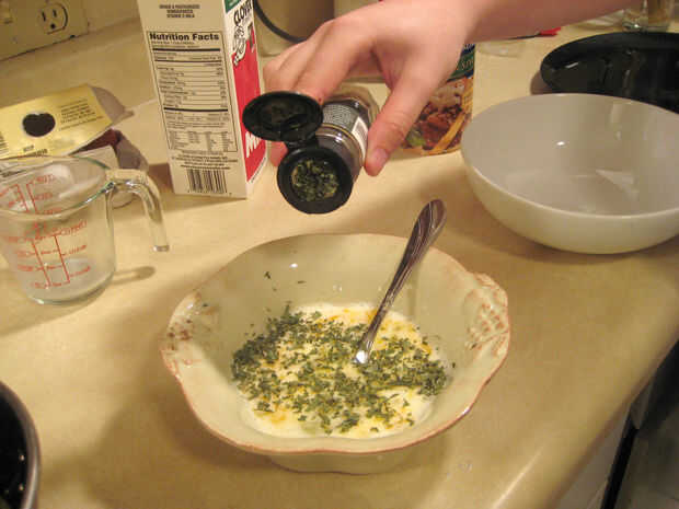 Si después se mezcla bien, no parece ser cualquier perejil flotando encima de la superficie, espolvorear más en la mezcla.