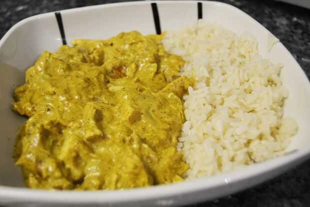 Vamos a hacer el cambio del tiempo otra vez, disculpas a The Rocky Horror Picture Show.¿Cena para dos? No hay problema.Descongelar un paquete pre-hechos de salvaje y arroz en la nevera (1-2 días). Calor S y oro suave B curry y añadir el pollo previam