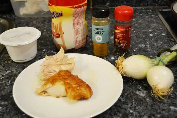 -Pollo asado. (I´m con las sobras, puede cocinar su pollo o pechuga de pollo o incluso usar otra carne o vegetales.)