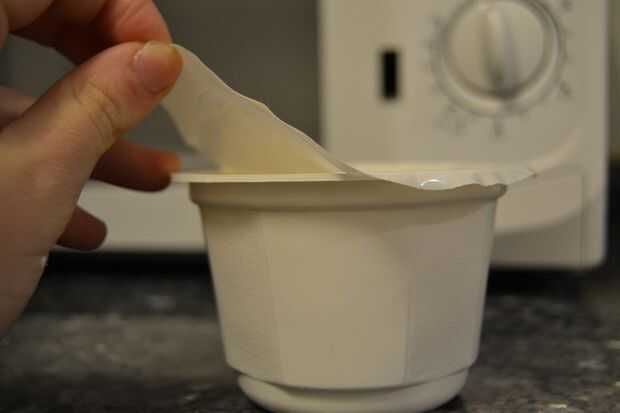 Poner la taza en el siguiente de microondas las instrucciones del fabricante (en mi caso, 1 minuto.), es recomendable abrir 1 cm desde la parte superior.