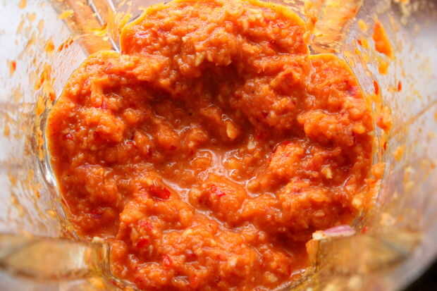 Poner los ingredientes de la marinada en una licuadora y mezcla.