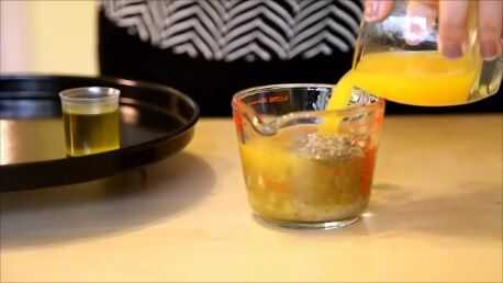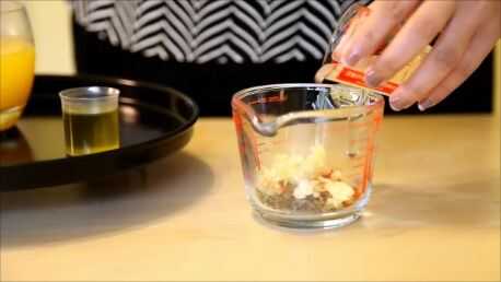 En una jarra poner sal, pimienta negra en polvo, orégano, tomillo, polvo de la Paprika, triturado, jugo de limón/lima, jugo de naranja fresco - 1/4 litro (250ml) y aceite de oliva. Dar una buena mezcla.
