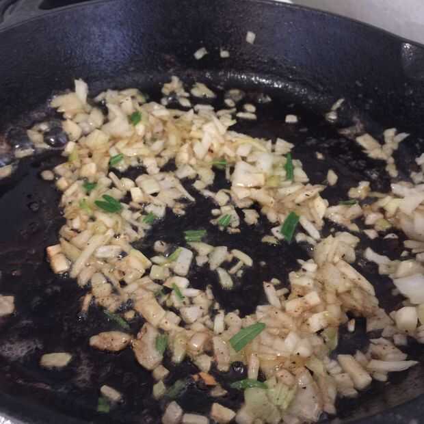Agregue cebolla y el ajo y sofría durante un minuto a fuego medio.