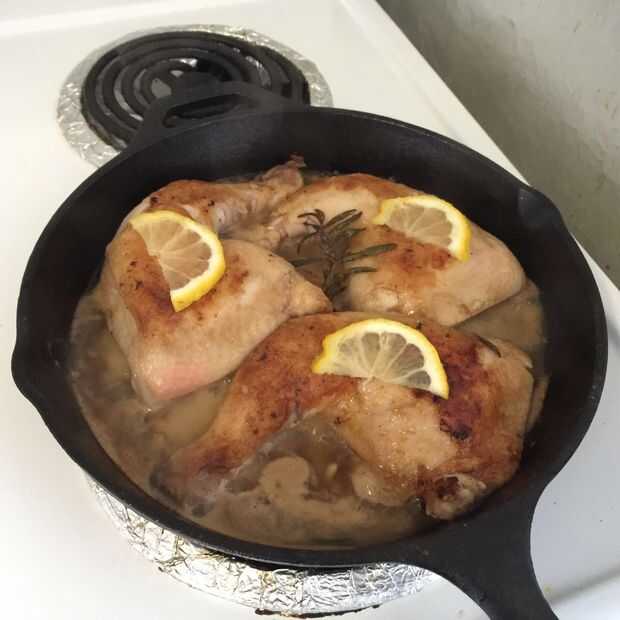 Una vez que comience a hervir, poner el pollo frito en la sartén, mantener una rodaja de limón en cada pollo. Transferirlo al horno y cocer al horno durante una hora o hasta que cocinen bien. Después de la cocción, sacar la sartén del horno, dejar reposar 5 minutos.