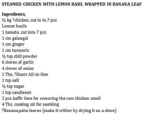 Pollo al vapor con limón albahaca envuelto en hoja de Palma de plátano (1 / 2 paso)