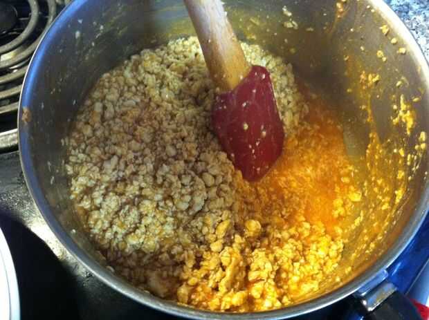 Cocine a fuego medio alto. Remover con frecuencia para mantener el pollo en trozos pequeños.