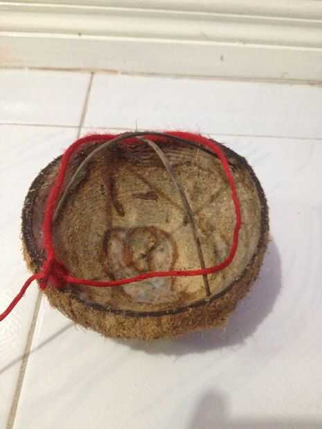 Garantizar su trampa, cavar un poco para poner la taza en el suelo para evitar ser golpeado y inclinado por el pollo. Un medio coco con cáscara se sentaría bien si ha sido cortada de la parte inferior de la cáscara y es plana.