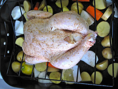 Rocíe una pequeña cantidad de aceite de oliva sobre ellos para conseguir que va, pero no demasiado. El pollo va goteando grasa en ellos, así por lo que no quieres ir por la borda.