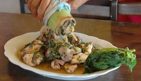 A la plancha rellenos de pechuga de pollo con calabacín y berenjena