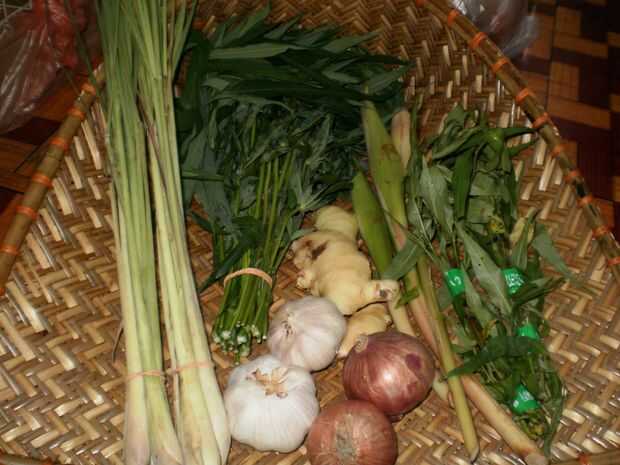 Este plato indonesio es conocido como Ayam Ingkung.Puede utilizar pollo en lugar de pollo entero, y usted puede hacer picante añadiendo un par de chiles ojo de pájaro haciendo la pasta. Servir con arroz caliente, coliflor «arroz», en dados para ensal