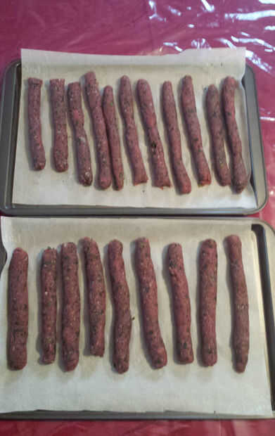 Luego coloque la bola de Kafta entre tus palmas y darles forma en pinchos de 20 cm (un poco más de un Hot Dog)