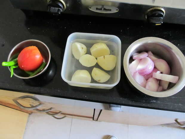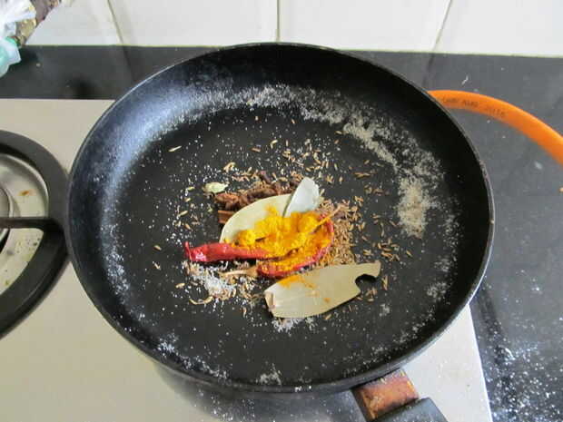 Poner las especias en la licuadora, agregar el chile verde y tomate y mezcla en una pasta fina. Deje la especia para en algún momento.
