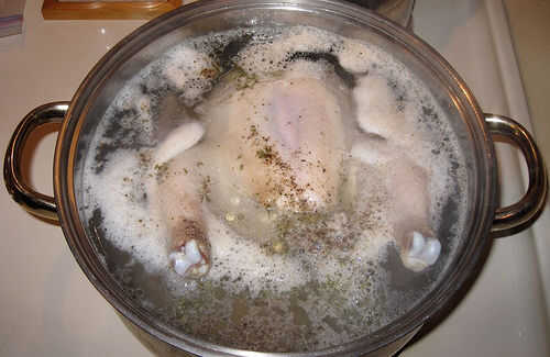 Pollo y bolas de masa hervida