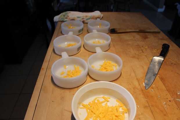 Mientras, cocina el pollo, añadir el recordatorio de los quesos a los fondos de mis guisos de pastel olla.
