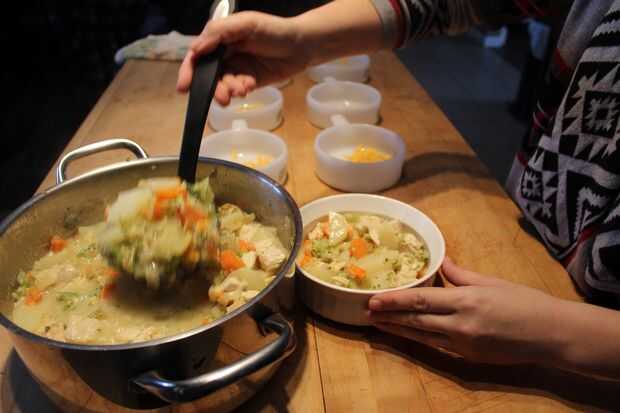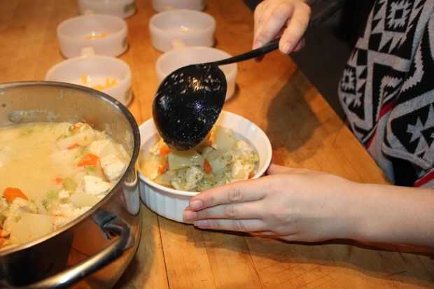 Una vez que el pollo esté cocido, retirar del fuego y sirva en platos de cazuela.
