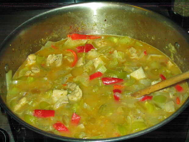 Revolver si es necesario. Los tomatillos caerá una gran cantidad de agua que necesita para cocinar fuera para darle una consistencia de guiso adecuado. Deja la olla en medio/bajo en la parte posterior de la estufa a fuego lento y revolver si es necesario para evitar que se pegue.