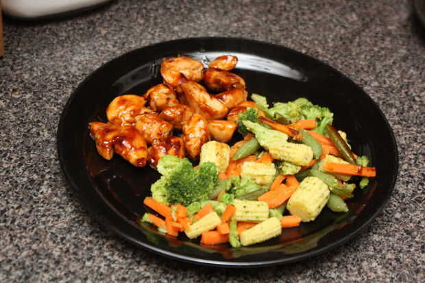 Este pollo chino naranja sirve bien con un lado de verduras frescas.