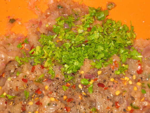 - 2 cebollas pequeñas picadas muy finas (la cebolla más, las koftas más suave)