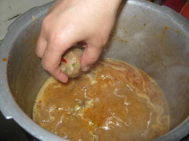 Otro delicioso plato de Indonesia se conoce como Sambal Goreng Printil. Puedes servir este plato como es, pero mejor es con arroz caliente.Paso 1: albóndigas carne de res magra 500 g1 huevoMezcla la carne con huevo y 1 cucharada pequeña (aproximadame