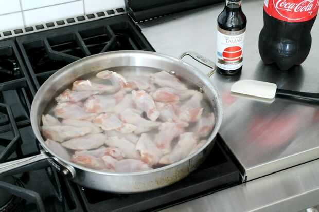3.-comenzar a hervir a fuego lento el pollo en Coca-Cola durante unos 30 minutos o hasta que el sabor se establece completamente. Tapar la olla para mantener el sabor.
