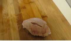 Cuchillo de uso para hacer una abertura en el ala de pollo. La forma debe parecerse a la imagen siguiente.