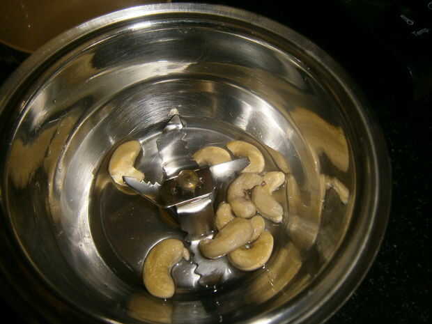 Colocar las pepitas de Marañón en la licuadora con el agua de remojo y mezclar hasta que quede suave.