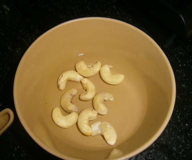 Remoje los anacardos crudos en 1/2 tazas de agua hirviendo durante 30 minutos.