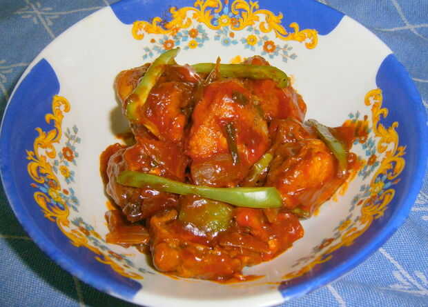 Cocina Indochina es la fusión de la cocina China e India. Investigué sobre la cocina China y encontró ese marinado, freír y hacer una salsa es llamado Nanking pollo. Esta es la técnica se adapta de la cocina China con un toque indio.