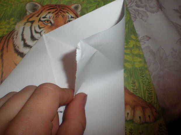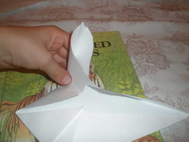 Entonces abrir el pliegue que acaba de hacer y saque el pliegue han hecho haciendo que último doblez y flaten es. Repita por lo que parece en las fotos.