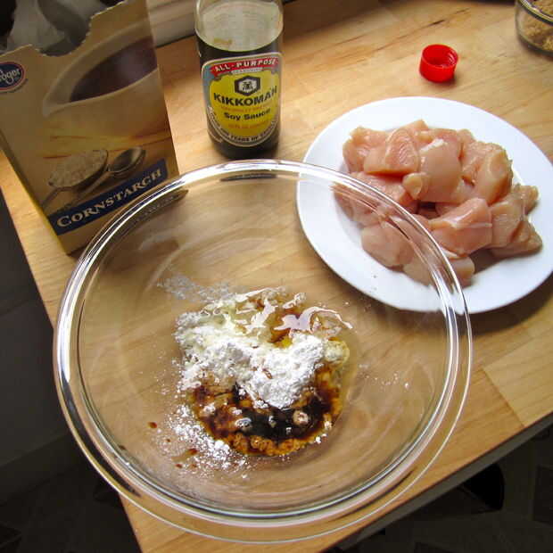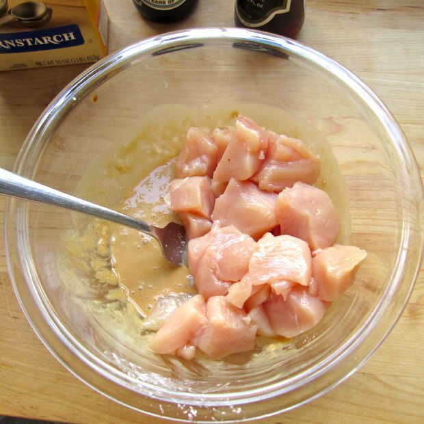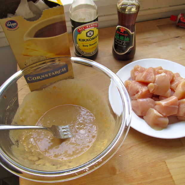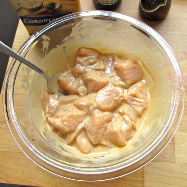Volcar el pollo y mezcle a la capa. Vas a que este se siente mientras prepara la salsa. (Necesita sentarse 10-15 minutos) Echarlo alrededor de vez en cuando para asegurarse de que todo está cubierto!