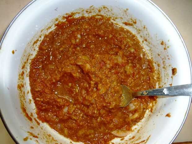 La pasta de especias está lista. No he añadido agua a la mezcla.