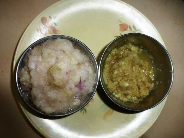 1. Jengibre pelado y el ajo y hecho pasta en un mezclador / amoladora