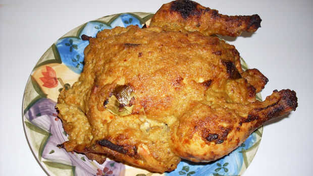 Puede utilizar pollo en lugar de pollo entero, y usted puede hacer picante añadiendo un par de chiles ojo de pájaro haciendo la pasta. Servir con arroz caliente, coliflor «arroz», en dados para ensalada, rallado para quesadillas, y muy bien con puré de patatas y judías verdes demasiado.