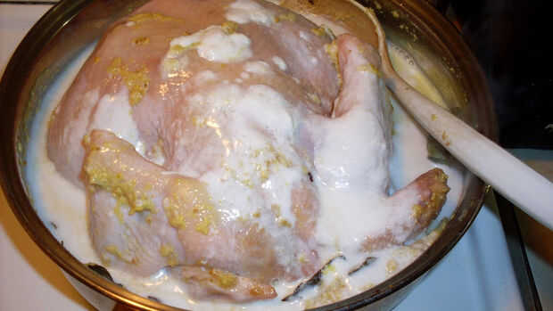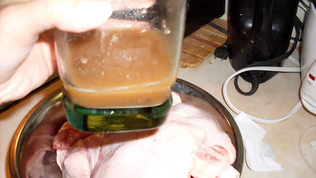 Capa de pollo fuera y dentro de la cavidad con agua de Tamarindo, deje reposar durante media hora