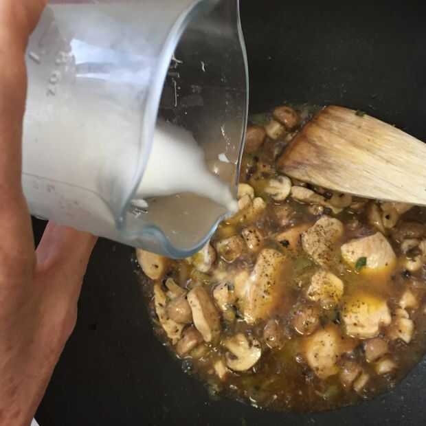 Verter en el caldo y cocinar a fuego lento durante 5 minutos a fuego lento. Mezclar la maicena con un poco de agua frío hasta formar una pasta. Este revolver para el pollo y cocinar a fuego lento hasta que espesa y brillante.