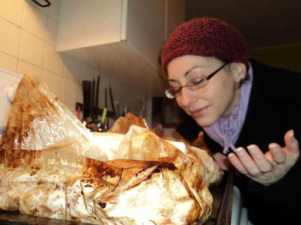 Por ahora su cocina está llena de olores deliciosos loco, abra la puerta del horno y cuidadosamente con manoplas para horno saque sus paquetes encantador. Las bolsas doradas y casi ido ligeramente translúcido con cocina. Las bolsas pueden haber desarrollado una fuga o dos que se enredara en la bandeja para hornear galletas. Las galletas estarán calientes, para líquidos podría salpicar rociar hacia fuera, tenga cuidado. Los líquidos aunque son oro líquido flava! escurrirlos en una maceta si quieres hacer alguna salsa, así.