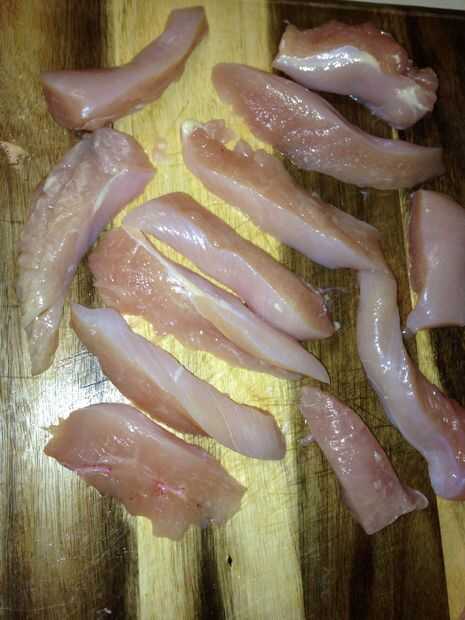 Por lo que me resulta más fácil cortar el pollo alrededor de 2 pulgadas o más y en tiras largas, fáciles de envolver y total buen gusto de pollo al tocino